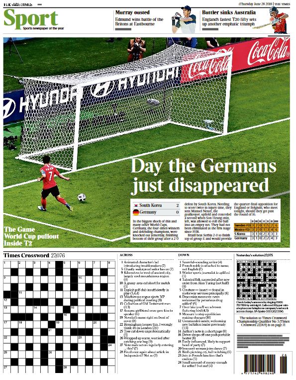 المنتخب الألماني، خسر أمام نظيره الكوري الجنوبي بهدفين دون رد، ليفقد فرصة التأهل إلى دور الـ16 من منافسات المونديال ويخرج من الدور الأول.